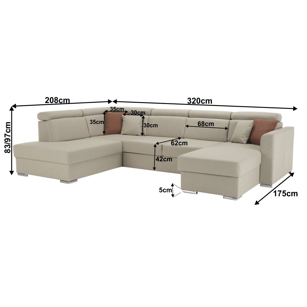 Rozmery: (ŠxHxV): 320x208-175x83-97 cm, plocha na spanie (ŠxD): 130x260cm