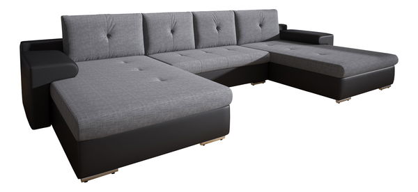 Moderná rohová sedačka U Marlon v tvare "U" v sivom a čiernom prevedení poskytuje skvelý dizajn pre náročného zákazníka. Sedačka je vyrobená z kvalitných materiálov, ktoré zaručujú dlhú životnosť. Dvojfarebná kombinácia tkaniny a ekokože dodáva sedačke štýl a moderný vzhľad. Štyri veľké vankúše zabezpečujú pohodlné sedenie. Široké opierky rúk môžu slúžiť aj ako odkladacie priestory. Sedačka disponuje jedným úložným priestorom a dá sa rozložiť na lôžko na spanie. Konštrukcia stojí na nízkych kovových nožičkách. Tkanina Sawana je ľahká a odolná s jemnou štruktúrou vhodná na čalúnenie pohoviek a postelí. Ekokoža Mandarin MA je mäkká, flexibilná a farbová stála s imitáciou pravej kože. Balenie obsahuje tri balíky. Táto rohová sedačka U Marlon je ideálnym kúskom pre váš obývaci priestor.