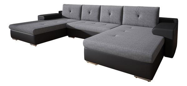 Moderná rohová sedačka U Marlon je ideálna pre tých, ktorí hľadajú luxusné sedenie s vysokým komfortom. Sedačka má dvojfarebnú kombináciu tkaniny a ekokože, ktorá dodáva sedačke osobitý šmrnc. Má široké opierky rúk, ktoré môžu slúžiť ako odkladacie priestory, a štyri veľké vankúše pre pohodlné sedenie. Sedačka má aj jednu úložnú skrinku a dá sa ľahko premeniť na lôžko na spanie. Konštrukcia je vyrobená z masívneho dreva, drevenej dosky a preglejky. Výplň z polyuretánovej peny a pružín Faliste zaručí maximálny komfort. Sedačka má výšku 78 cm, hĺbku 181 cm a plochu spania 300 x 120 cm. Nožičky sú chrómové a tkanina Sawana má vysokú odolnosť a gramáž 340g/m² +/-5 %. Ekokoža Mandarin MA má gramáž 440g/m² a test oderuvzdornosti Martindale 30 000 cyklov. Táto sedačka je dodávaná v troch balíkoch a váži 158 kg.