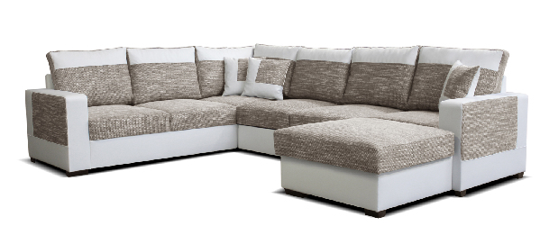 Rohová sedačka U Mega 2+A+2F+L (béžová + biela) (P) *výpredaj