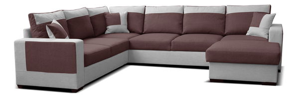 Priestranná rohová sedačka v tvare do U, ktorá vám zabezpečí dostatok komfortu a zároveň bude krásnym moderným doplnkom vo vašich obývacích izbách. Sedačka je potiahnutá kombináciou látok. Veľké vankúše, ktoré slúžia ako operadlá, majú v hornej časti ozdobný látkový pás. Sedačka je rozkladacia a po jej rozložení vytvoríte pohodlnú plochu na príležitostné spanie. V sedačke sa nachádza aj úložný priestor, do ktorého si viete uložiť posteľnú bielizeň a ďalšie doplnky. Pravé prevedenie sedačky.