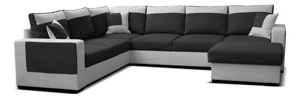 Priestranná rohová sedačka v tvare do U, ktorá vám zabezpečí dostatok komfortu a zároveň bude krásnym moderným doplnkom vo vašich obývacích izbách. Sedačka je potiahnutá kombináciou látok. Veľké vankúše, ktoré slúžia ako operadlá, majú v hornej časti ozdobný látkový pás. Sedačka je rozkladacia a po jej rozložení vytvoríte pohodlnú plochu na príležitostné spanie. V sedačke sa nachádza aj úložný priestor, do ktorého si viete uložiť posteľnú bielizeň a ďalšie doplnky. Pravé prevedenie sedačky.