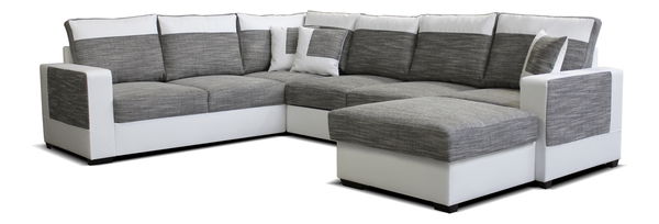 Rohová sedačka U Mega 2+A+2F+L (sivá + biela) (P)