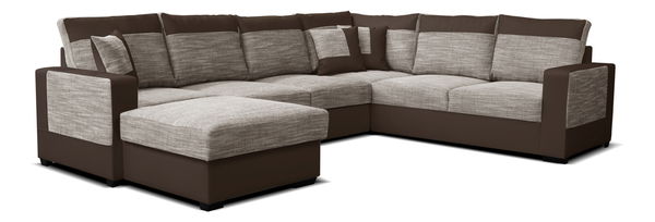 Priestranná rohová sedačka v tvare do U, ktorá vám zabezpečí dostatok komfortu a zároveň bude krásnym moderným doplnkom vo vašich obývacích izbách. Sedačka je potiahnutá koženkou a látkou. Veľké vankúše, ktoré slúžia ako operadlá, majú v hornej časti koženkový pás. Sedačka je rozkladacia a po jej rozložení vytvoríte pohodlnú plochu na príležitostné spanie. V sedačke sa nachádza aj úložný priestor, do ktorého si viete uložiť posteľnú bielizeň a ďalšie doplnky. Ľavé prevedenie sedačky.