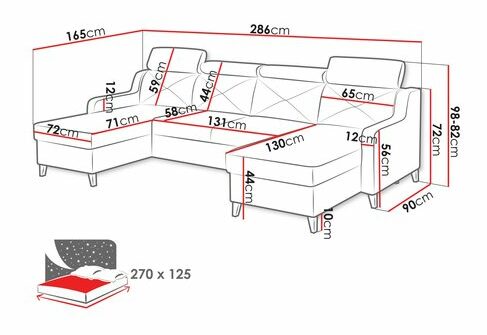ZobraziťRohová sedačka Orolon U s funkciou spánku vám otvára množstvo možností. Model je perfektnou voľbou pre trávenie chvíľ so svojimi blízkymi počas premietania filmov alebo rodinných stretnutí. V prípade potreby poskytuje aj pohodlný priestor na spanie s rozmermi: 270 × 125 cm. Jej ďalšou výhodou je priestranná úložná základňa. Rohová sedačka s dvomi úložnými priestormi na posteľnú bielizeň je receptom na poriadok vo vašom okolí. K zvýšenému komfortu používania určite prispievajú aj nastaviteľné opierky hlavy. Môžete si ich prispôsobiť svojim individuálnym potrebám. Zabezpečíte si tak vhodné podmienky pre každodenné používanie tejto rohovej sedačky. Medzi praktickými riešeniami nájdete automatický skladací stroj typu Delfin a drevené nohy, ktoré model jemne zdvihnú nad podlahu a dodajú mu ľahkosť a jemnosť.