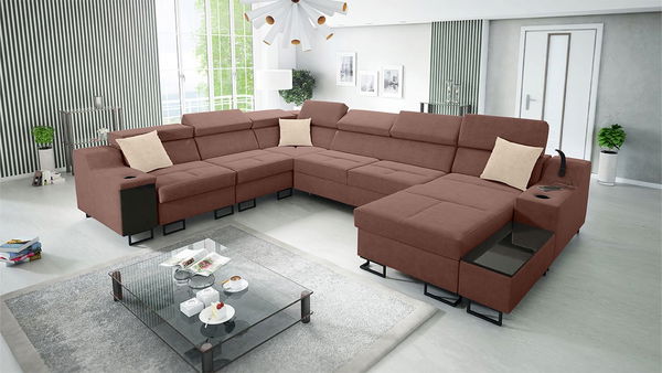Prvkom, ktorý dokonale zapadne do priestrannej obývačky je rohová sedačka Pesaruna VIII s tromi úložnými priestormi. Tento veľký model ponúka množstvo praktických riešení. Skladanie pomocou stroja Delfin, funkcia spánku a nastaviteľné opierky hlavy sú len niektoré z nich. V zozname vybavenia rohovej sedačky je aj otváracia lišta, USB port, lampa a elektrická zásuvka. Takéto doplnky posunú váš každodenný relax na vyššiu úroveň. Voľne stojaca rohová sedačka Pesaruna VIII sa ľahko rozloží a poskytne pohodlný relax.
