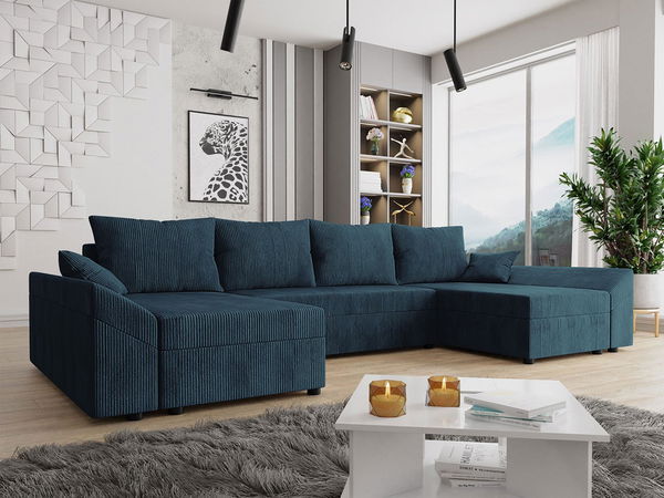 Rohová sedačka U Poltosa U (tmavomodrá) (s úl. priestorom)