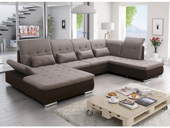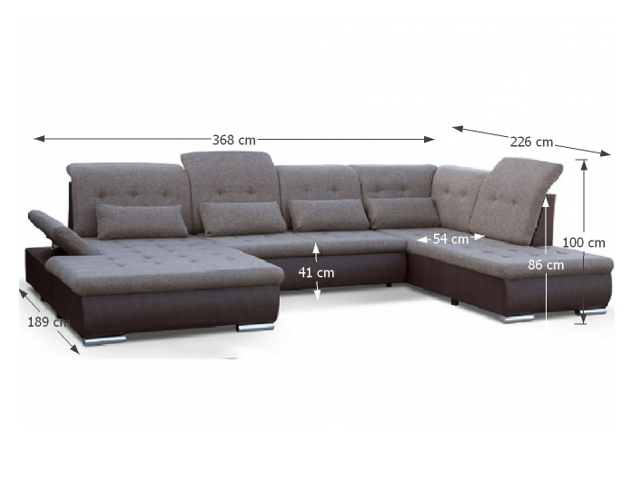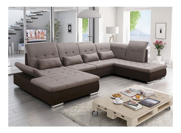 Priestranná sedačka v tvare do U poskytne dostatok miesta na sedenie a leňošenie. Pocit pohodlia zvyšujú opierky chrbta, ktoré sa dajú polohovať. Polohovať je možné aj jednu časť na otomane. Sedačku dodávame spolu so štyrmi dekoratívnymi vankúšmi. Moderný vzhľad sedačky dodáva aj dekoratívne prešitie sedacej časti a kovoé nožičky. Sedačka je rozkladacia s plochou na spanie 125 x 290 cm. Na čalúnenie bola použitá kvalitná CORONA a FALCONE čalúnická látka.