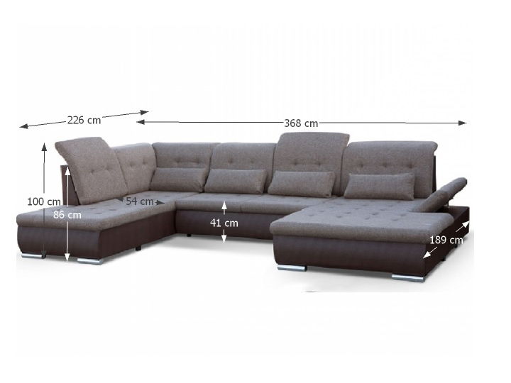 Priestranná sedačka v tvare do U poskytne dostatok miesta na sedenie a leňošenie. Pocit pohodlia zvyšujú opierky chrbta, ktoré sa dajú polohovať. Polohovať je možné aj jednu časť na otomane. Sedačku dodávame spolu so štyrmi dekoratívnymi vankúšmi. Moderný vzhľad sedačky dodáva aj dekoratívne prešitie sedacej časti a kovoé nožičky. Sedačka je rozkladacia s plochou na spanie 125 x 290 cm. Na čalúnenie bola použitá kvalitná CORONA a FALCONE čalúnická látka.