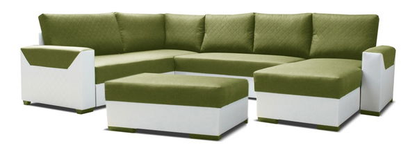 Dokonalá elegancia, oku lahodiaci dizajn, príjemné hranaté tvary - to sú vlastnosti rohovej sedačky Safiro vyrobenej v prevedení biela koženka a zelená farba pistácie a vyhotovení pravý roh. Sedačka je pevná a nemá úložný priestor, rozmerný priestor na spanie vznikne prisunutím rozmernej taburetky do stredu sedačky, ktorá sa nachádza v balení. Rozmer plochy na spanie bude potom 250 cm dĺžka a 145 cm šírka. Sedák je vyrobený z pružiny, čím je zaručený komfort mäkkého sedenia a tvarová trvácnosť sedačky. V balení sa nachádza 6 veľkých vankúšov vo farebných odtieňoch šenilu a slúžiacich ako opierka. Sedačka stojí na drevených nožičkách. Na výber sú aj ďalšie krásne farebné kombinácie sedačky Safiro.
