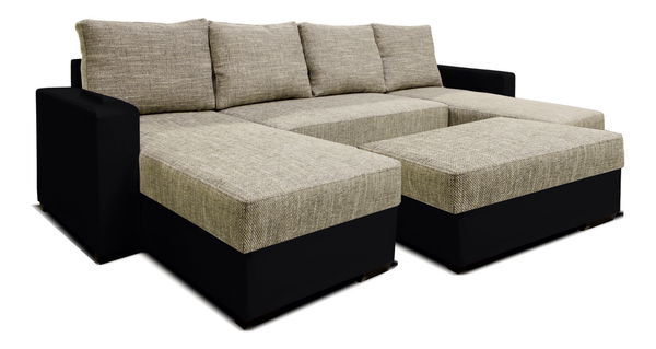 Rohová sedačka v tvare písmena U je univerzálna a tak dokonale zapadne do ktoréhokoľvek rohu vo Vašej obývacej izbe. Je nerozkladacia, no spacia plocha vzniká prisunutím taburetky. Čalúnená je koženkou a šenilom a máte na výber z troch farebných prevedení. Šírka operadla (bočnice) je 17,5 cm.