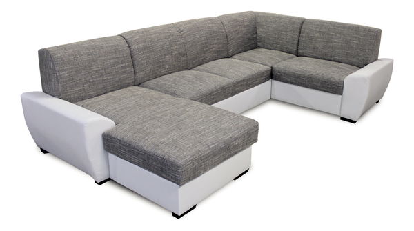 Moderná rohová sedačka do tvaru písmena U, skvele vynikne v obývacej izbe a dokonale sa hodí k ostatnému nábytku. Je celočalúnená koženkou a šenilom. Na výber máte z troch farebných prevedení: biela + sivá, čierna + sivá, hnedá + svetlohnedá. Jednoduchým pohybom ju rozložíte, čím vznikne veľká plocha spania, na ktorej sa pohodlne vyspia aj dve osoby.