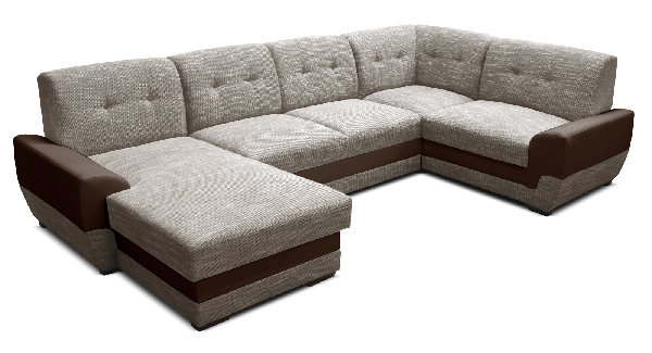 Moderná a priestranná rohová sedačka v tvare do U, ktorá má zaoblené podrúčky a prešívané vankúše v operadlovej časti. Sedačka je potiahnutá koženkou a látkou. V prípade potreby je možné sedačku aj rozložiť a vytvoriť tak plochu na prespanie. Užitočný je aj úložný priestor nachádzajúci sa v otomane sedačky. Ľavé prevedenie sedačky.