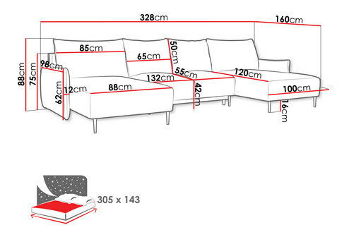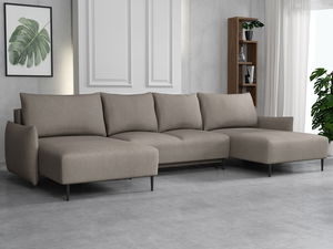 ZobraziťRohová sedačka Welenora U s funkciou spánku je spojením úžasného štýlu s funkčnosťou a pohodlím. Módny relax vytvorený v súlade s najnovšími dizajnovými trendmi. Nábytok na nožičkách s mäkkými vankúšmi a elegantným, subtílnym tvarom. Dokonale sa hodí do rôznych štýlov interiéru, od klasických až po moderné. Rohová sedačka v tvare U je rozkladacia. Vďaka tomu sa dá využiť aj ako veľká, priestranná posteľ a dodatočné miesto na spanie pre hostí. Navyše ponúka aj veľký úložný priestor na lôžkoviny.