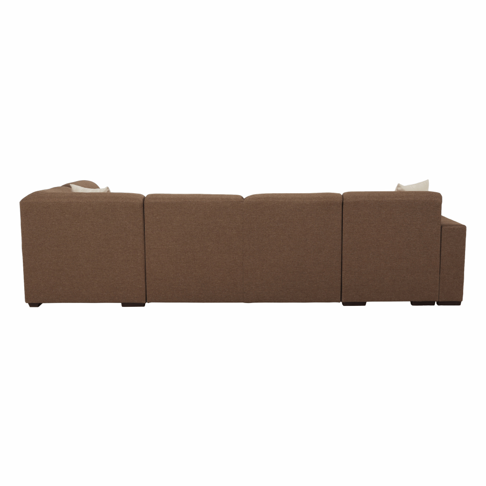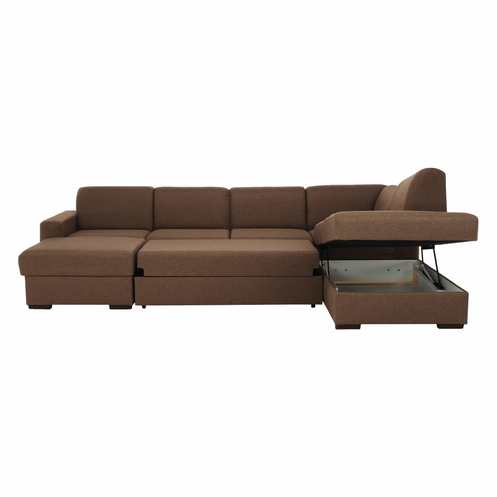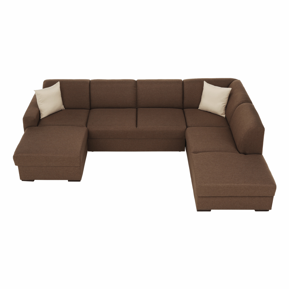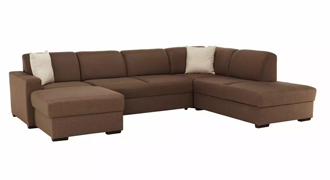 Rohová sedačka U Yorki hnedá (P) s výškou 80 cm a hĺbkou 160/218 cm je moderný kus nábytku s dvoma úložnými priestormi pre posteľné prádlo a možnosťou rozloženia na posteľ. Sedačka je čalúnená hnedej farby šenilu, a obsahuje dva béžové vankúšiky. Vďaka svojim rozmerom sa hodí do väčších obývacích izieb a má plochu spania 126 x 255 cm. Má možnosť individuálneho objednania v 12 farebných prevedeniach šenilu Savana. Vzorkovník nájdete v galérii. Sedačka je celočalúnená a vyrobená z látky, s odolnosťou textílie podľa testu Martindale: 80 000 oderov. Rozmerovo má 305x218/160x80 cm, výšku sedu 41 cm a hĺbku sedu 50 cm. Šírka menšieho otomanu je 85 cm a väčšieho 90 cm. Nosnosť na osobu je 90 kg a dodáva sa v demonte.