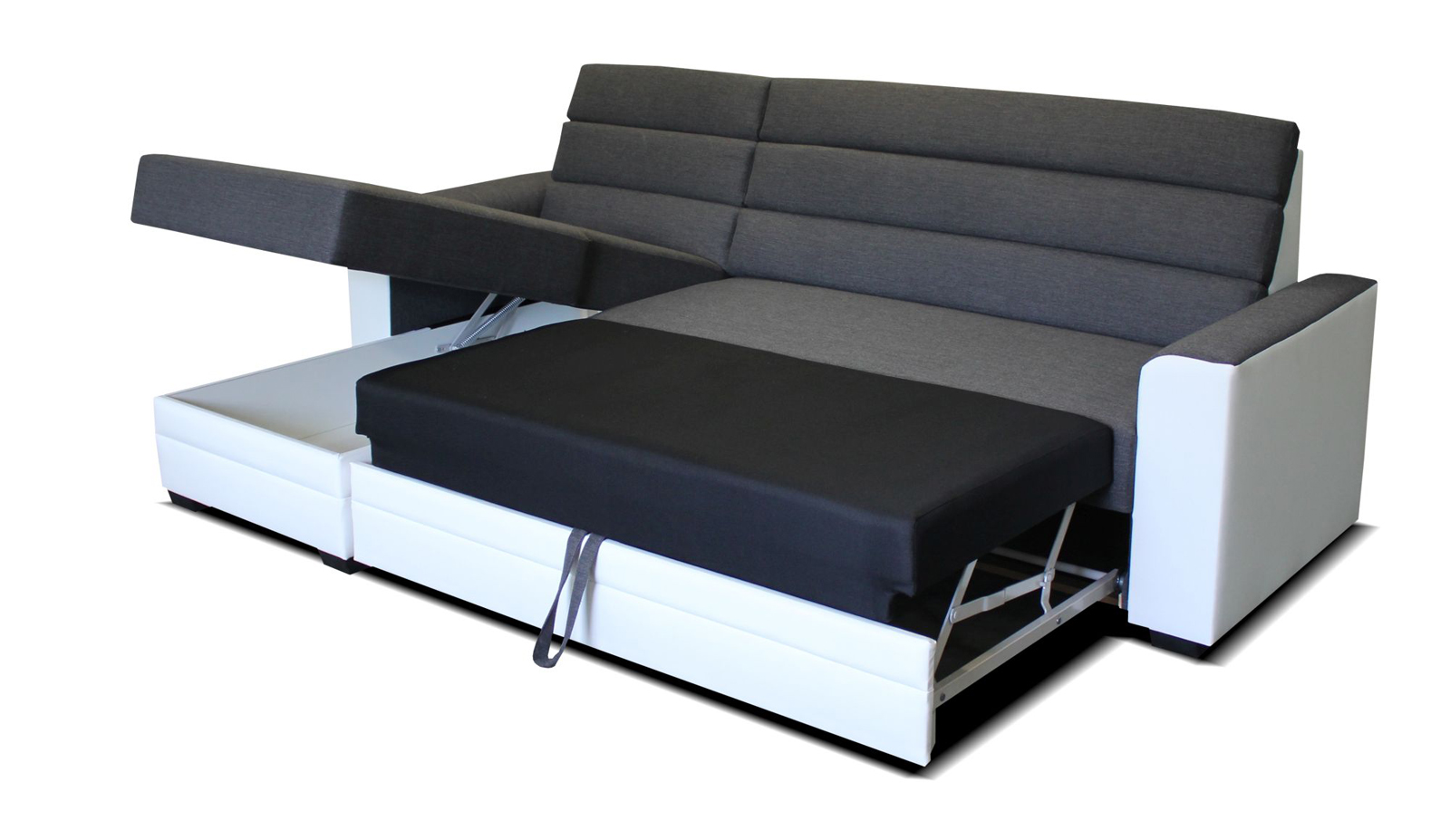 Obývacím izbám dodáte moderný vzhľad veľmi jednoducho prostredníctvom tejto rohovej sedačky. Operadlová časť má vodorovné ozdobné línie. Opierky rúk sú štýlovo zaoblené a dotvárajú príťažlivý dizajn sedačky. Sedačka je potiahnutá koženkou a látkou. Pre získanie plochy na spanie je možné sedačku rozložiť. Taktiež v sebe ukrýva praktický úložný priestor, do ktorého pohodlne odložíte posteľnú bielizeň. Sedačka je univerzálna.