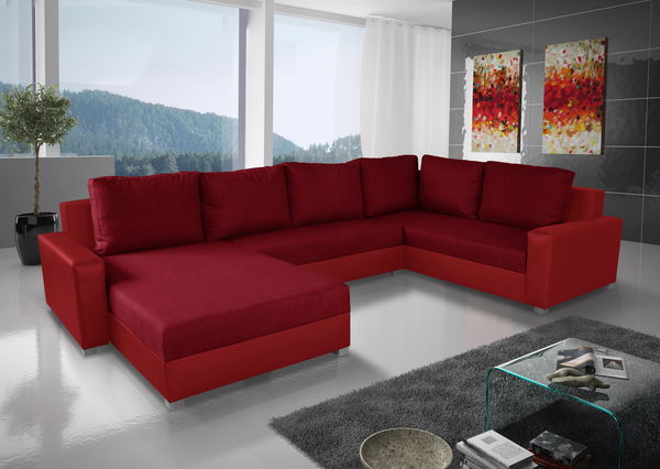 Rohová sedačka v tvare U Banno (červená) (P) o výške 80 cm a hĺbke 214 cm je moderná a poskytne vám dostatok pohodlia pri oddychovaní. Sedačka je ideálna pre sledovanie obľúbeného seriálu, čítanie knihy alebo relax s pohárom vína. Sedačka má výklopnú funkciu, takže ju môžete použiť aj ako posteľ. Okrem toho má aj praktický úložný priestor na posteľnú bielizeň a doplnky. Konštrukcia zo drevotriesky v hrúbke 16 mm, drevovláknitej dosky a preglejky spolu s výplňou z polyuretánovej peny a pružín zabezpečuje pohodlie a trvanlivosť. Sedačka má plochu spania 312x120 cm, výšku sedacieho miesta 40 cm a výšku operadla 64 cm. Súčasťou sedačky sú aj drevené nožičky. Tkanina Sawana s gramážou 340g/m +/-5 % je jemná na dotyk, ale zároveň odolná. Test oderuvzdornosti Martindale má hodnotu 45 000 cyklov. Ekokoža Mandarin MA je kvalitnou imitáciou pravej kože, s gramážou 440g/m³ a testom oderuvzdornosti Martindale 30 000 cyklov. Sedačka je dodávaná v 3 balíkoch.