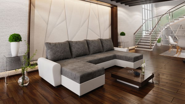 Rohová sedačka v tvare U Datolit (sivá + biela) (L)
