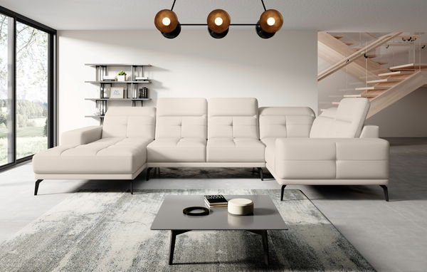 Rohová sedačka v tvare U Nicolette (biela) (P) s výškou 57-77 cm a hĺbkou 201 cm, je pohodlným a lákavým kúskom na relax a posedenie s priateľmi. Sedačka nemá úložný priestor ani funkciu rozkladu na príležitostné spanie. Tkanina je z mäkkého materiálu Softis 33, ktorý je odolný a jednoduchý na starostlivosť. Tento materiál má hladký povrch s odleskom, čo mu dodáva luxusný vzhľad. Korpus sedačky je vyrobený z kvalitnej borovice a výplň je z HR peny typu T21 a T25. Typ pružiny použitej v sedačke je vlnová pružina typu B. Sedačka má nastaviteľnú opierku hlavy a jej čalúnený chrbát pridáva na komforte. Sedačka je vhodná na sedenie pre 6 osôb, má zapustené ramená s šírkou 28 cm a výšku sedu 44 cm. Nožičky sú z čiernej ocele a majú výšku 18 cm. Poznámka pre zákazníka: Sedačku dodávame v demonte.