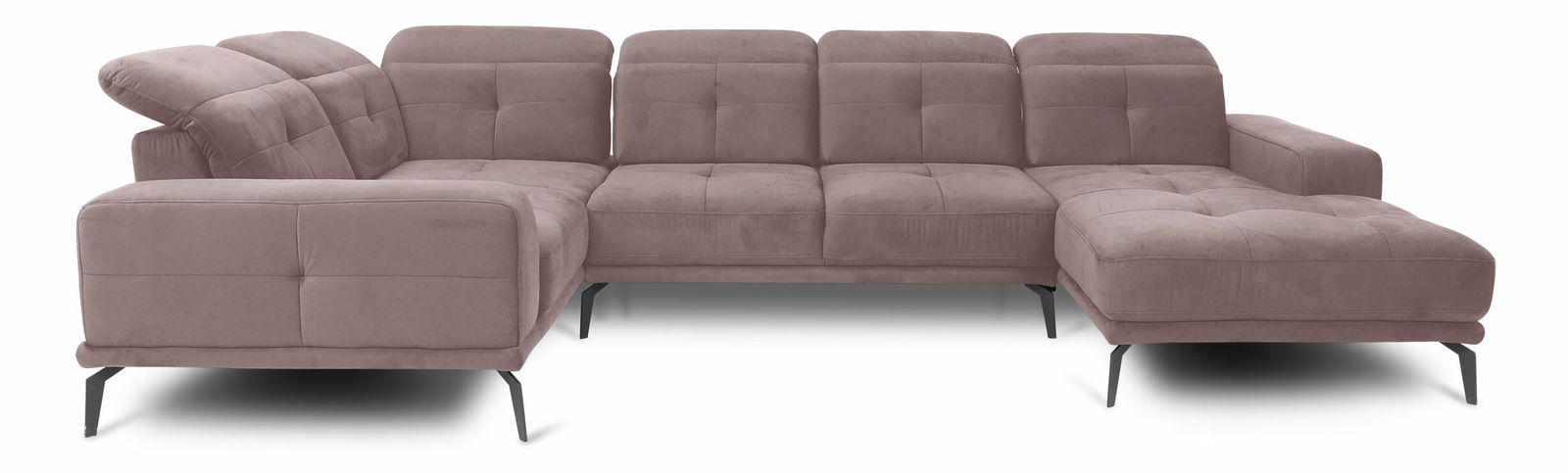 ZobraziťRohová sedačka v tvare U Nicolette (svetloružová) (L) je ideálnou voľbou pre relax a príjemné posedenie s priateľmi. Táto pohodlná sedačka nemá úložný priestor a nie je možné ju rozložiť na príležitostné spanie. Sedačka je vyrobená z kvalitnej tkaniny Loco 24, ktorá sa vyznačuje pevnosťou, odolnosťou a jednoduchou starostlivosťou. S hladkým povrchom a odleskom je táto tkanina ľahko udržiavateľná a príjemná na dotyk. Korpus sedačky je vyrobený z borovice a jeho výplň tvorí HR pena, konkrétne T21 + T25. Sedačka má rovnako vlnovú pružinu typu B a nastaviteľnú opierku hlavy. Nožičky sú z čiernej ocele a majú výšku 18 cm. Čalúnený chrbát zvyšuje pohodlie a komfort. Sedačka má výšku sedu 44 cm a hĺbku sedu 54-69 cm. Šírka podrúčky je 28 cm a počet miest na sedenie je 6. Ramená sú zapustené. Všetky diely sedačky sa dodávajú v demonte.
