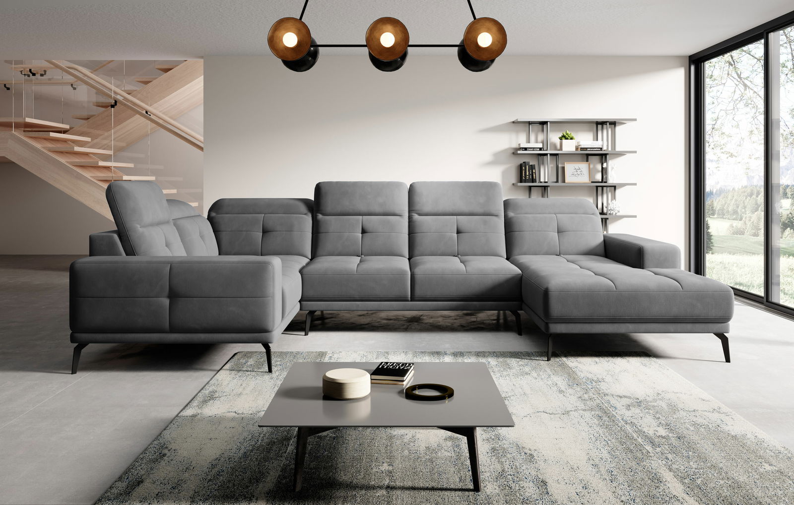 Rohová sedačka v tvare U Nicolette (tmavosivá) (L)