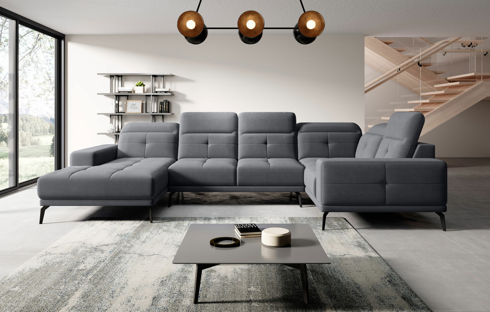 Rohová sedačka v tvare U Nicolette (tmavosivá) (P)