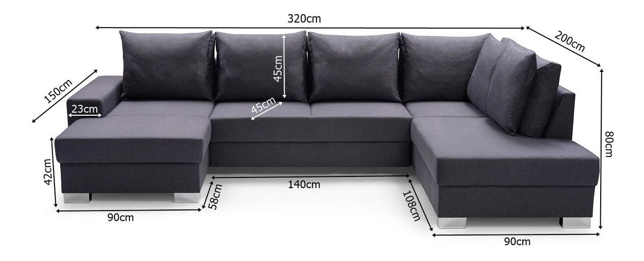 Rohová sedačka v tvare U Olympia (tmavosivá) (P)