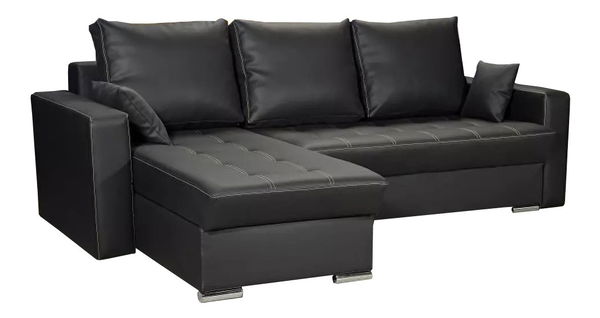 Rohová sedačka Valmero v elegantnom čiernom prevedení je vhodná pre každú domácnosť. Sedačka v basic štýle s jednofarebnou ekokožou zapadne do minimalistického interiéru. Sedačka má tri veľké vankúše na opretie chrbta a dva malé dekoračné vankúšiky s prešívaním na sedáku. Konštrukcia sedačky pozostáva z masívneho dreva, drevených dosiek a preglejky. Výplň je z polyuretánovej peny, ktorá zaručuje pohodlné sedenie. Sedačka disponuje možnosťou rozkladu na plochu spania 200 x 135 cm a dvomi úložnými boxami. Výška sedenia je 41 cm, hĺbka sedenia s vankúšmi je 66 cm a bez vankúšov 86 cm. Sedačka stojí na kovových nožičkách s chrómovým povrchom. Tkanina ekokože Mandarin MA je kvalitnou imitáciou pravej kože, mäkká, odolná a farbostála. Test oderuvzdornosti Martindale dosahuje až 30 000 cyklov. Sedačka Valmero je balená v troch balíkoch s celkovou váhou 104 kg.