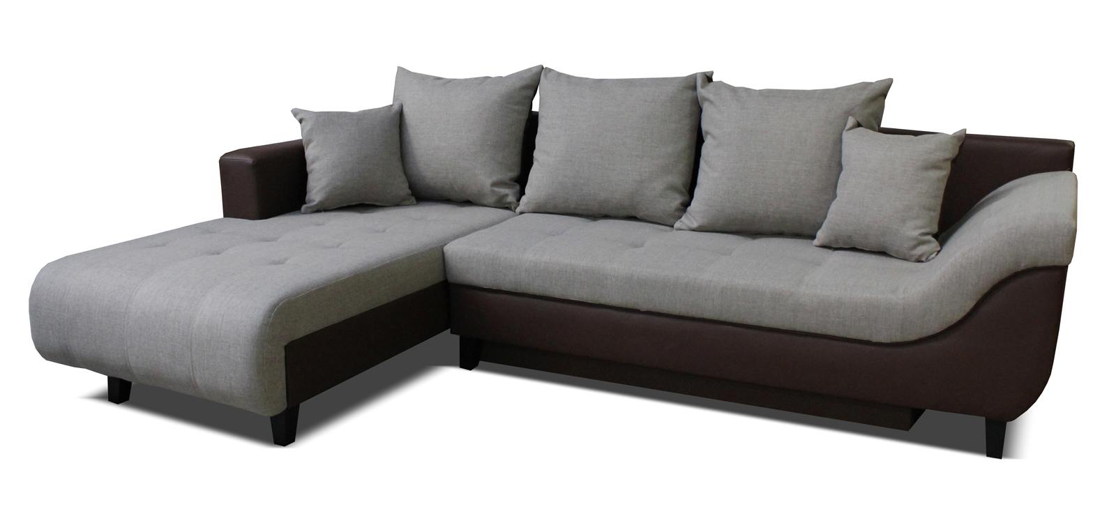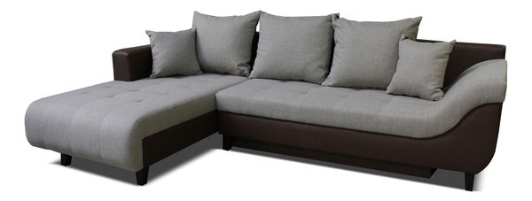 Moderná rozkladacia rohová sedačka sa bude skvele vynímať vo Vašej obývacej izbe. Spojenie koženky a látky z nej robí elegantný kus nábytku. Z jednej strany je opierka zošikmená pre pohodlné sedenie napríklad pri čítaní knihy. O pohodlie sa postará aj množstvo vankúšikov. Na výber máte z troch farebných prevedení. Jednoduchým pohybom ju rozložíte, čím vznikne spacia plocha až pre dve osoby. Sedačka obsahuje aj úložný priestor na posteľné prádlo.