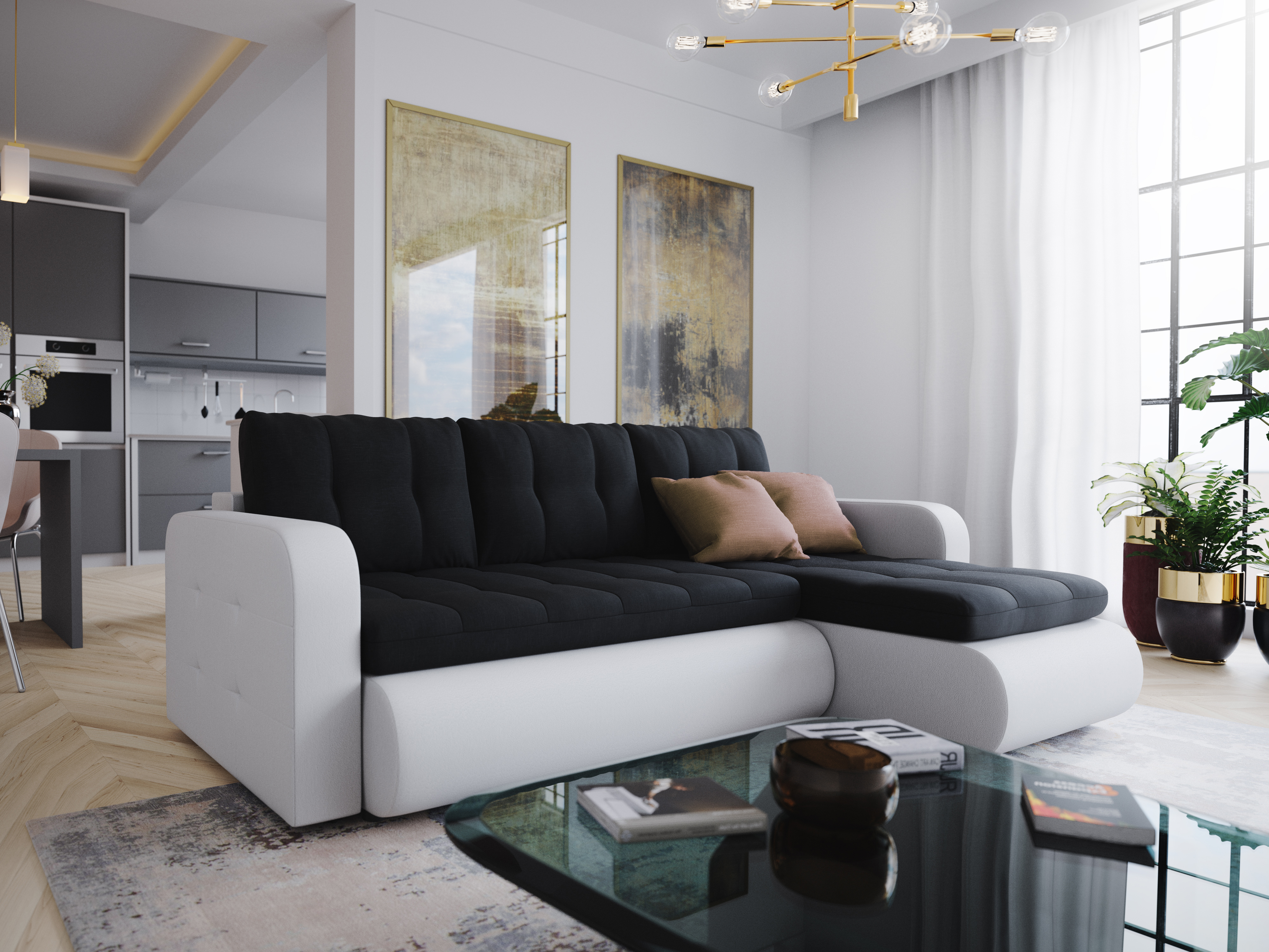 Rohová sedačka Vergil (biela + čierna) (P)