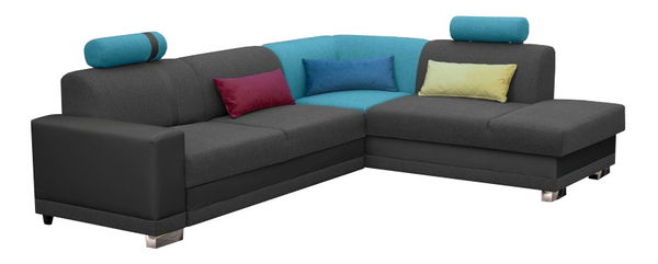 Rohová sedačka Veta (čierna + modrá + čierna) (P) s výškou 77 cm a hĺbkou 262 cm je pohodlná, veľká a priestranná sedačka, ktorá má nastaviteľnú opierku hlavy v dvoch miestach. Ponúka sa v niekoľkých farebných variantoch a má mnoho úložného priestoru aj rozloženie na príležitostné spanie. Je dostupná v ľavom aj pravom prevedení. Tkanina Inari 100, z ktorej je sedačka vyrobená, je vysoko kvalitná látka patriaca do skupiny tkaných látok. Je to plochá tkaná látka z dvoch farebných nití, ktorá je odolná voči oderu a roztrhnutiu. Látka sa nemôže prať, žmýkať ani čistiť chemicky, len ručne hubkou namočenou v saponáte alebo tepovať. Test oderuvzdornosti Martindale pre tkaninu Inari je 49 000 cyklov. Konštrukcia sedačky je z drevotriesky a lamino dosky. Pružina je falistá a výplň je z peny T-30. Nožičky sú z plastu a majú chrómovú farbu. Plocha na spanie je 208 x 124 cm a rozkladací mechanizmus je vozičkový. Sedačka má úložný priestor a výšku sedu 43 cm. Rozmery balíka č. 1 sú 217x86x70 cm/90 kg a rozmery balíka č. 2 sú 195x87x70 cm/80 kg. Sedačka Veta je praktický a pohodlný nábytok do každej obývačky.