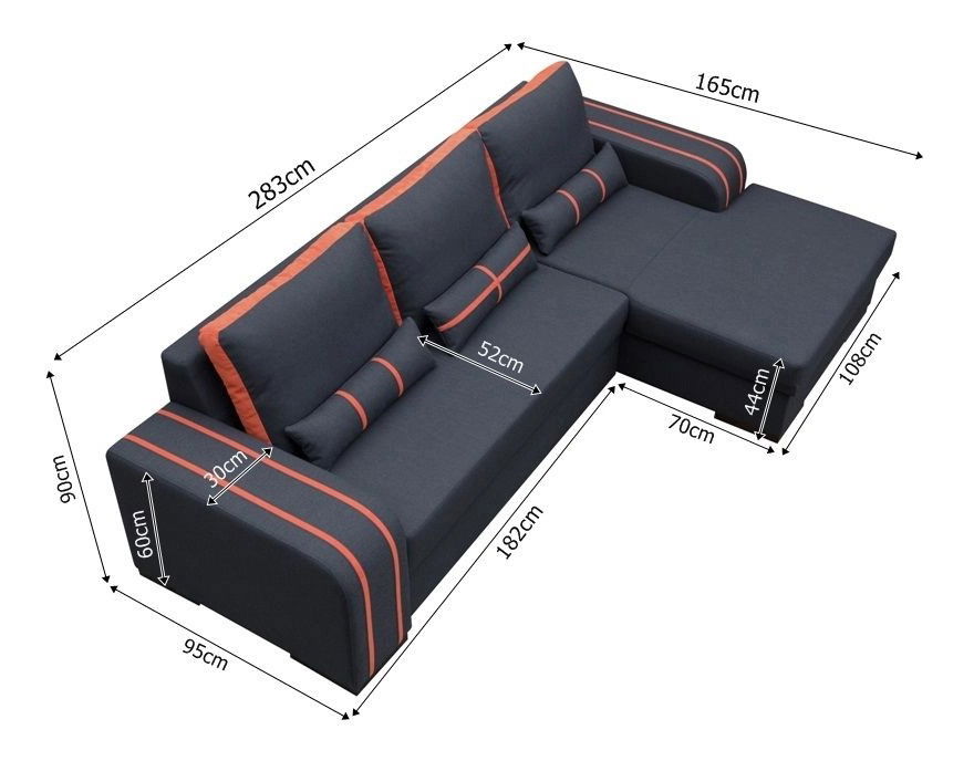 ZobraziťModerná rohová sedačka Vinita s pruhovými linkami dodáva celému produktu dynamiku. Okrem toho, že má elegantný vzhľad, ponúka aj praktické riešenia, ako úložný priestor a rozloženie na príležitostné spanie. Sedačka Vinita je dostupná v ľavom aj pravom prevedení. Tkanina Inari 96 + Inari 91 je veľmi kvalitná látka, ktorá patrí medzi tkané látky a je odolná voči oderu a roztrhnutiu. Test oderuvzdornosti Martindale ukazuje, že látka vydrží až 49 000 cyklov. Konštrukcia sedačky je vyrobená z drevotriesky a lamino dosky, pružiny sú falisté a výplň je z peny T-30. Nožičky sú vyrobené z tmavého orechového dreva a majú výšku 4 cm. Sedačka má plochu na spanie 220 x 140 cm a rozkladací mechanizmus vo forme vozíka. Sedačka má aj jeden úložný priestor. Hĺbka sedu je 52 cm a výška sedu je 44 cm. Sedačka má čalúnené zozadu, čím sa stáva multifunkčnou a vhodnou do každej obývacej miestnosti.