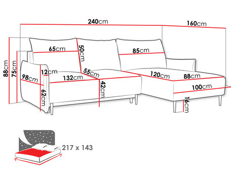 Vytvorte si priestor pre denný aj nočný relax. Uľahčí vám to rohová sedačka Welenora L s funkciou na spanie. Medzi početnými výhodami tohto modelu nájdete funkciu spánku, úložný priestor a opierku chrbta v podobe pohyblivých vankúšov. Model je vybavený automatickým zariadením MOS, ktoré uľahčuje zmenu miesta na sedenie na miesto na spanie. Voľne stojaca rohová sedačka Welenora L je perfektnou voľbou do každej obývačky. Je ideálna pre situácie, kde je obývacia izba zároveň spálňou. Pozoruhodné sú aj vyššie kovové nohy, ktoré dodávajú tomuto modelu mierne loftový štýl.