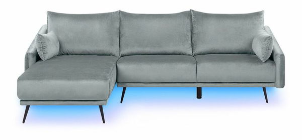 Táto trojmiestna pohovka s čalúnením z elegantného zamatu dodá každej obývačke nádych elegancie a sofistikovanosti. Hrubé sedadlá a operadlá poskytujú výborný komfort počas sedenia, zatiaľ čo pevný rám z eukalyptového dreva a čierne kovové nohy zaisťujú odolnosť a stabilitu nábytku. Vďaka svojmu univerzálnemu dizajnu v tvare písmena L, s ležadlom na pravej strane z pohľadu sediacej osoby, je táto pohovka ideálna na sedenie, leňošenie a relaxáciu. Pohovka je vybavená LED podsvietením, ktoré dodá interiéru jedinečný vzhľad.