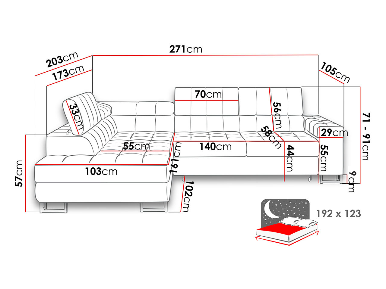 Rohová sedačka Zanara bude vhodná do každej obývacej izby! Zanara sedačka je model, ktorý sa vyznačuje jedinečným komfortom, moderným dizajnom a zameraním na každý, aj najmenší detail. Bola vyrobená z vysoko kvalitných materiálov a má bohatú farebnú schému, ktorá sa prispôsobí každému modernému usporiadaniu. Rohová sedačka, bola vyrobená podľa vzoru písmena „L“, ktoré umožňuje použiť uhol v miestnosti alebo oddeliť jednotlivé zóny. Je to voľne stojaci model, takže ho môžete ľahko umiestniť aj do stredu miestnosti - jej chrbát je pokrytý látkou. Najväčšími výhodami sedačky Zanara sú nastaviteľné opierky hlavy, ktoré zvyšujú pohodlie; odkladacia schránka, ktorá vám umožní uložiť posteľnú bielizeň alebo iné doplnky, ako aj funkciu na spanie, ktorá poskytuje ideálne miesto na oddych pre dvoch. Sedačka Zanara je model, ktorý má zaujímavý vzhľad a poskytuje neuveriteľné pohodlie. Určite spĺňajú očakávania všetkých nadšencov moderného usporiadania.