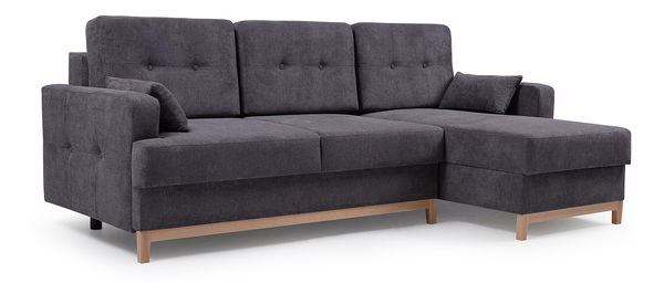 Rohová sedačka Zaron (tmavosivá) (P) s výškou 93 cm a hĺbkou 146 cm Alfa 20 je skvelým funkčným riešením pre váš obývací priestor. Jej jednoduchý, no príjemný, zaoblený dizajn vám poskytne pohodlie a primeraný priestor na relaxáciu. Sedačka Zaron je vybavená dostatkom priestoru na prespanie vďaka možnosti rozkladu a taktiež úložným priestorom. Tkanina Alfa je vysokokvalitná poťahová látka odolná proti oderu, príjemná na dotyk, hrubá a trvanlivá. Výplň sedadla a operadla tvorí falistá pružina a pena PU. Sedačka má výšku lôžka 45 cm, výšku korpusu (zadnej časti) 75 cm, výšku sedu 45 cm a hĺbku sedu 63 cm. Nohy sú vyrobené z dreva. Sedačka je rozkladacia a obsahuje 2 kontajnery na posteľnú bielizeň. Plocha spania je 210 x 143 cm. Vankúše sú vyplnené penou PU. Sedačka Zaron nie je vybavená pohyblivými opierkami hlavy, no v cene sú 3 veľké vankúše.