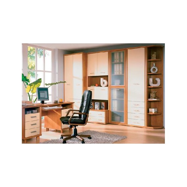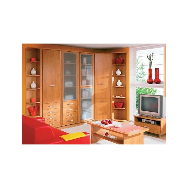Zostava je určená do obyvacich izieb. Masívny dizajn. Mliečne sklá vitrín, hliníková farba úchytov. Zosilené vence a sokle. 11 prvkov v 2 farebných prevedeniach dvierok: javor strassburg, javor strassburg / vanilka.