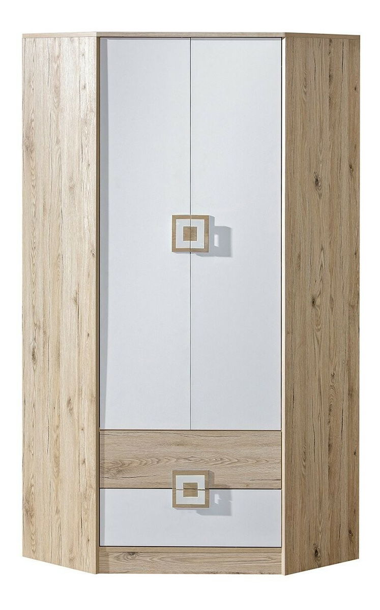 Rohová skriňa NI02 Nikol (Dub svetlý + Biely + Dub svetlý)