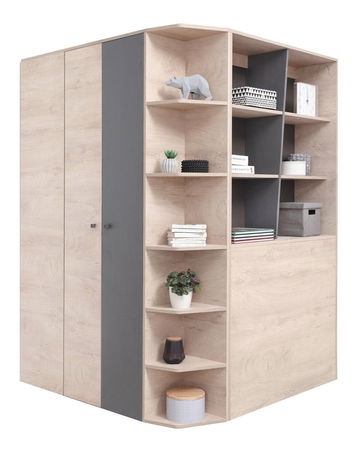 Rohová skriňa Pionier PO01 L / P (dub + antracit)*výpredaj