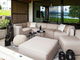 Výnimočný komfort sedenia, šik dizajn, funkčnosť a nadčasová krása - to všetko dokonale vystihuje túto elegantnú súpravu vonkajšieho nábytku v neutrálnej béžovej farbe. Hlboké sedadlo zaisťuje neuveriteľné pohodlie pri sedení a práškom lakovaný kovový rám ponúka stabilitu. Táto sedacia súprava vyzerá nádherne v záhrade alebo na terase, ale môže byť aj dokonalým doplnkom vášho interiéru. Vďaka odolnému polyesterovému čalúneniu s penou Quick Dry je súprava ideálna na použitie v exteriéri. Jednotlivé kusy je možné umiestniť samostatne alebo spojiť so stredovým sedadlom a vytvoriť veľkú rohovú pohovku s taburetom.