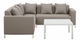Vylepšite svoj vonkajší priestor touto sedacou súpravou. Rohová sedacia súprava ponúka dostatok miesta až pre 5 osôb a vďaka modulárnemu dizajnu sa dá rozložiť akokoľvek chcete. Je vyrobená z odolnej polyesterovej tkaniny v štýlovej farbe, je odolná voči UV žiareniu a ľahko sa udržiava. Súprava sa dodáva s konferenčným stolíkom vyrobeným z hliníka s práškovým lakovaním v krémovobielej farbe a vankúšikmi na zvýšenie pohodlia. Je vyplnená penou Quick Dry, ktorá zvyšuje odolnosť nábytku proti dažďu a rôznym poveternostným vplyvom.