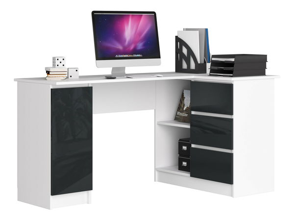 Rohový PC stolík Bevin (grafit lesk) (P)