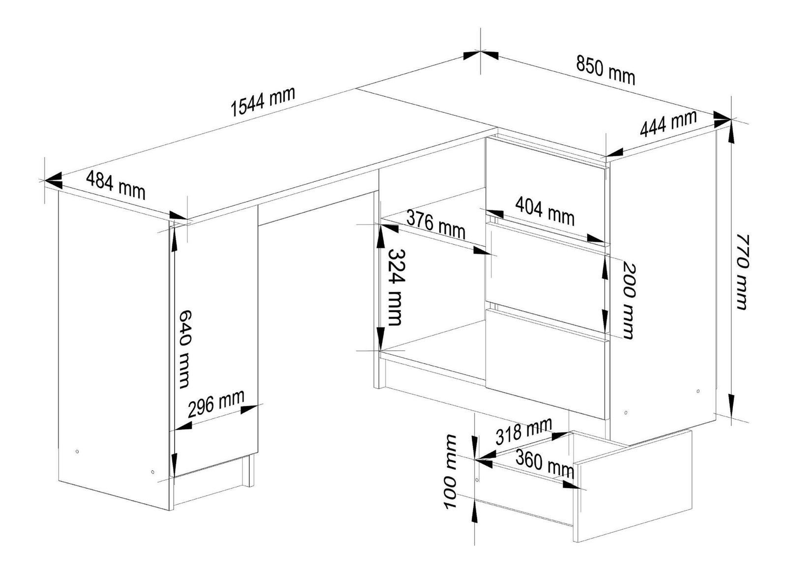 Rohový PC stolík Bevin (lesk čierny) (P)