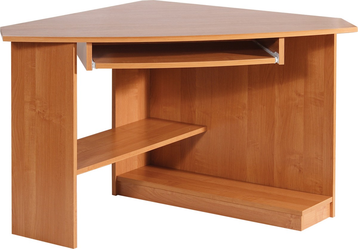 Rohový PC stôl, ktorý sa skladá z pracovnej dosky, pod ktorou sa nachádza výsuvná doska na klávesnicu. Na pravej strane stolíka v dolnej časti je umiestnená dlhá polica na klasickú PC skriňu. V priestore na nohy sa nachádza priečna doska, ktorá môže slúžiť napríklad aj ako miesto na tlačiareň. Farebné prevedenie je jelša.