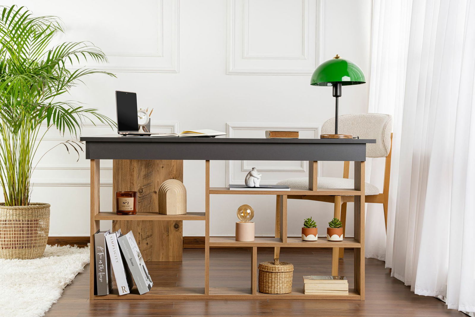 - Rohový PC stolík Cete (antracit + borovica atlantická)