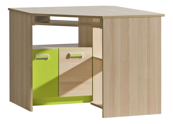 PC stolík vhodný či pre dievča alebo chlapca. Bude každodenným spoločníkom pri písaní si úloh alebo vypĺňaní voľného času. Je rohový a ponúka množstvo úložného priestoru. V ľavej časti sa nachádza skrinka s dvomi dvierkami, vpravo regál na uloženie napríklad PC skrinky. V strede je umiestnená výsuvná doska na klávesnicu.
