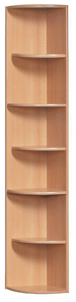 Jedna výška – mnoho možností montáže! Rohové prvky: vonkajšie (regál a vitrína), vnútorný (skriňa). 10 prvkov v farbe jelša medová.