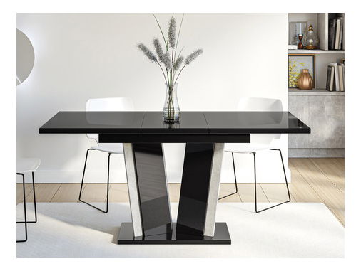 Rozkladací jedálenský stôl Ledysa II (čierny mramor royal + lesk čierny) (pre 2-6 osôb)