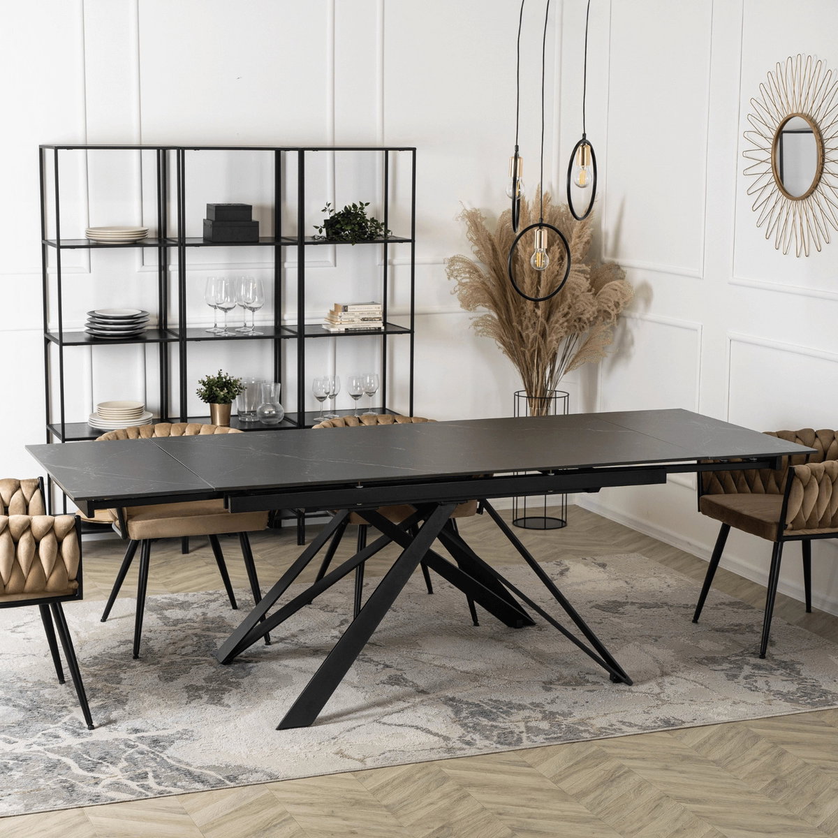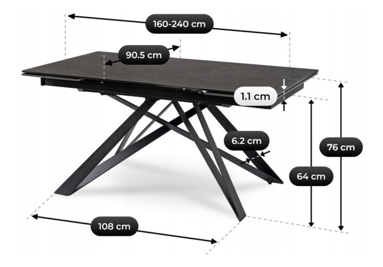 Rozkladací jedálenský stôl Maximus (čierna) (pre 6-8 osôb)