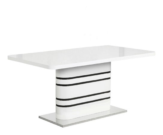 Rozkladací jedálenský stôl Tesam s výškou 76 cm a hĺbkou 90 cm je ideálny pre rôzne účely v jedálni. S jeho elegantným dizajnom z kvalitného MDF a kovovým podstavcom je tento stôl skvelou voľbou pre každú domácnosť. Biela farba s vysokým leskom HG a čiernymi pásikmi dodávajú vašej jedálni nádych luxusu. Stôl má rozkladaciu funkciu, takže si ho môžete rozložiť počas osláv alebo keď sa objavia neočakávaní hostia. Rozmery stola sú 160x90x76 cm a po rozložení 200x90x76 cm. Hrúbka materiálu na vrchnej časti je 40 mm, na strednej časti 18 mm a na spodnej časti 25 mm. Stôl je dodávaný v demonte, takže ho môžete ľahko zložiť a následne si užiť jeho výhody.